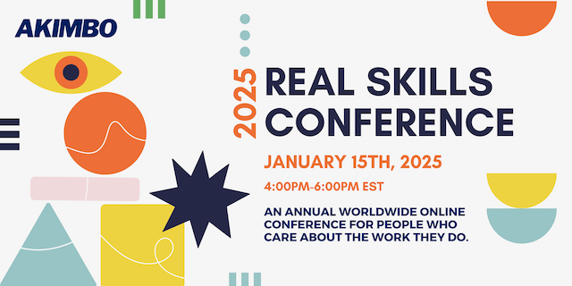 What real skills will matter most in 2025? Is it the ability to have difficult conversations? Is it the ability to adapt to changing technology? Is it tolerance of uncertainty? Is it flexibility? Is it curiosity? Is it speaking the truth? Is it inspiring others? The Real Skills Virtual Conference is a worldwide live conference for developing real skills. It all happens from your computer, in a video conference format, face to face. This isn't your typical conference. There aren't any speakers. It's about you and your work. This conference is about meeting people, forging connections, and learning together. This is what we believe conferences should be about. Inside, you'll engage in real-time conversations with other attendees from around the world in small groups of 4-5 attendees, in addition to bigger group discussions of several dozen attendees. It's a powerful way to see possibility and new paths forward.